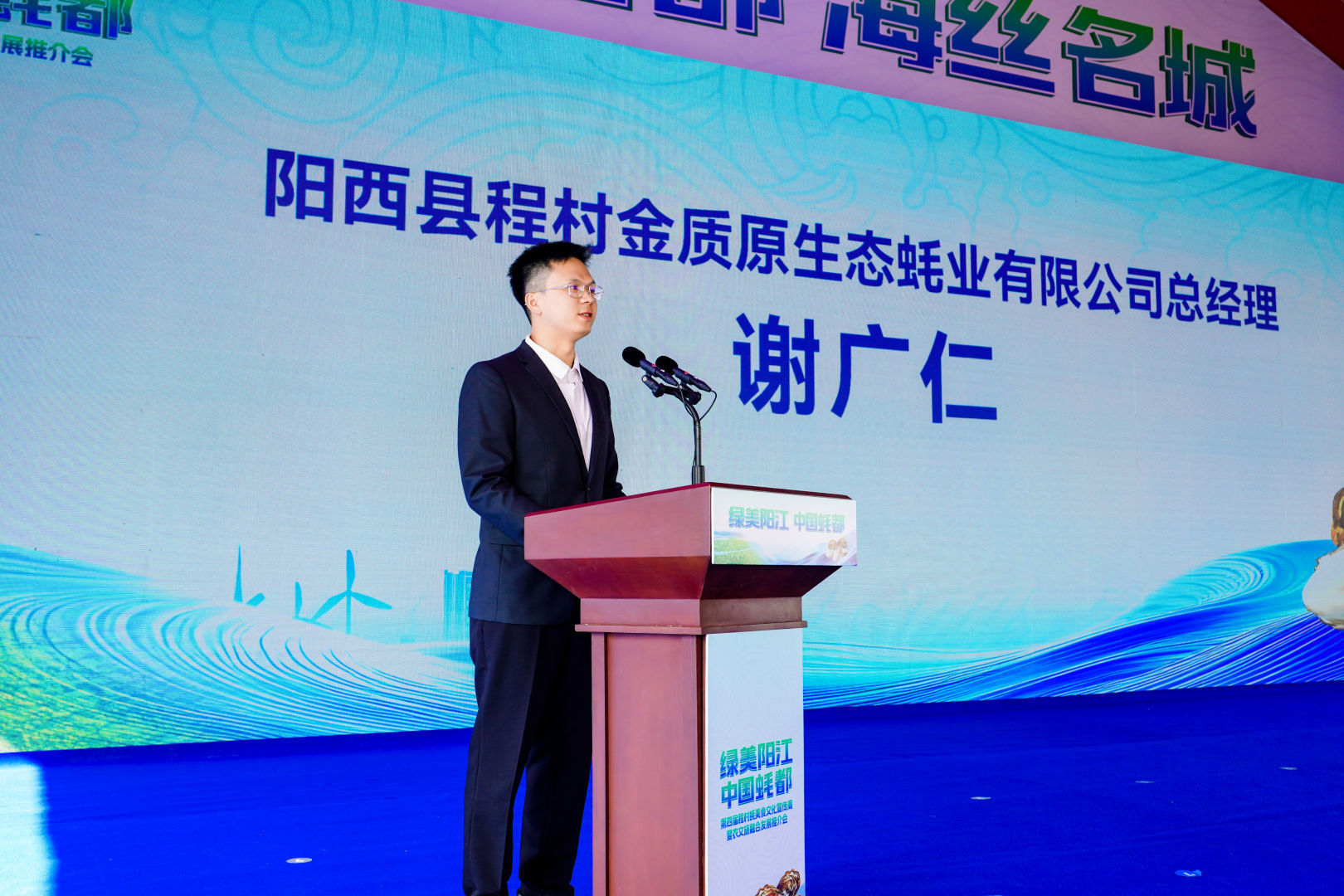 程村蚝协会代表、阳西县程村金质蚝业有限公司负责东谈主谢广仁(阳西县融媒体中心供图)