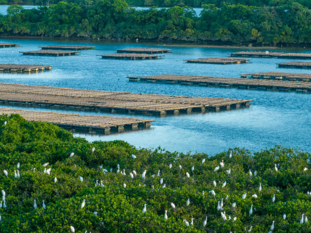 阳西县程村镇红树林水质白净,咸淡合乎,是祈望的自然蚝场。(任浩沿 摄)