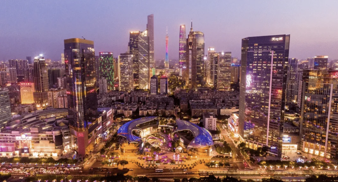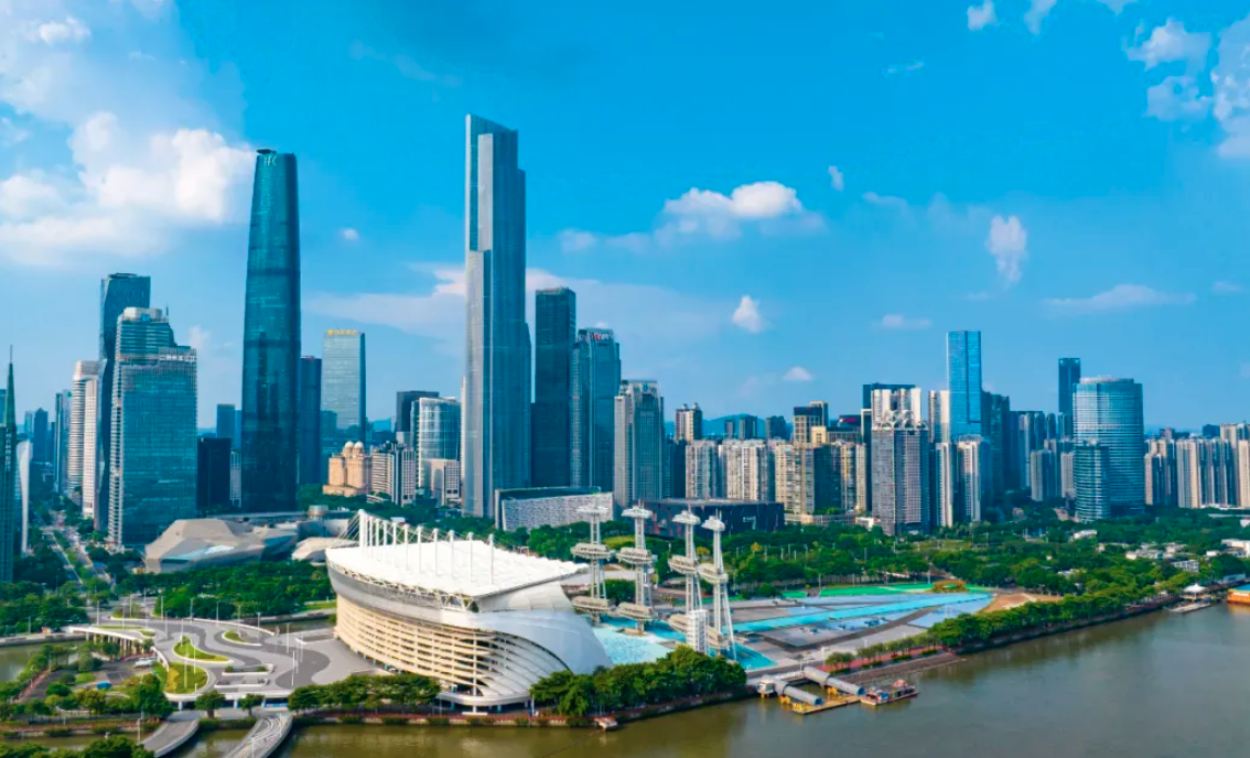 转入花城广场,城市天空线蓦地铺开。这里是广州的“城市客厅”、寰球300米以上摩天大楼最密集的区域之一。广州东西双塔如擎天双柱巍然耸峙,440米的广州西塔(广州外洋金融中心)与530米的广州东塔(周大福金融中心)并肩而立,勾画出广州的现代天空线。